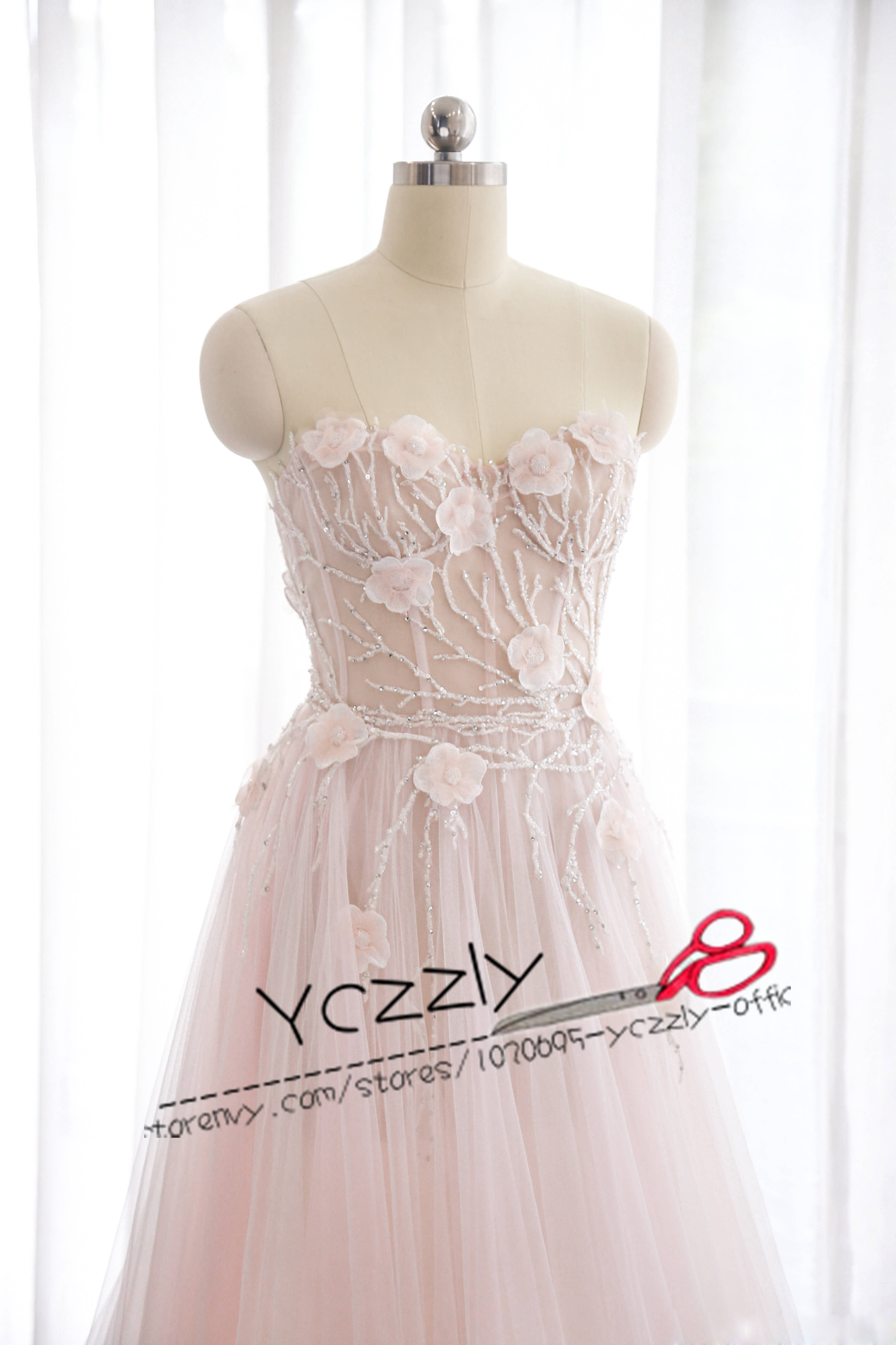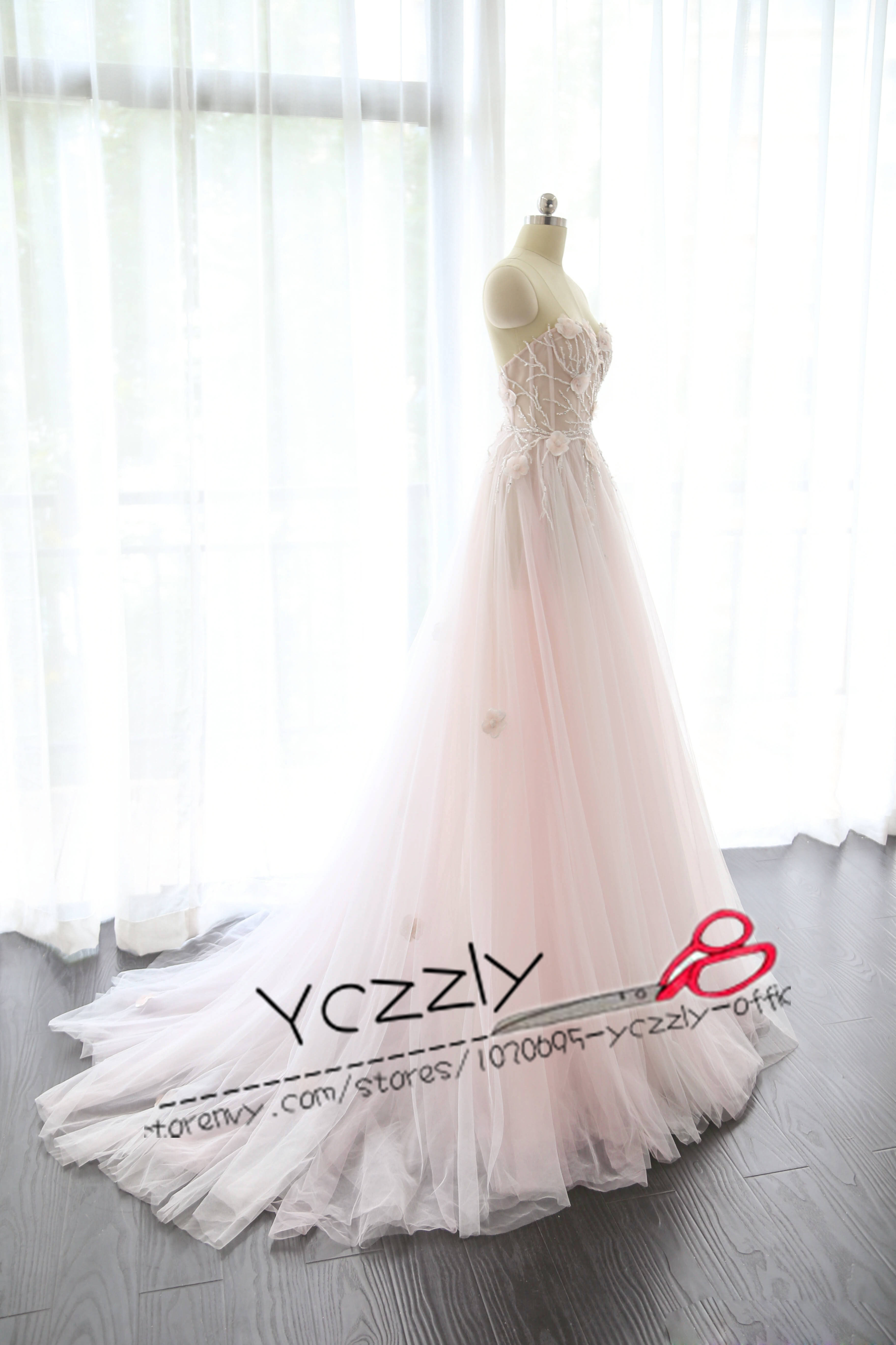 Romantic Pink A-line Sweetheart Appliques Crystal Beach Wedding Dresses Long Floral Bridal Gowns RW224