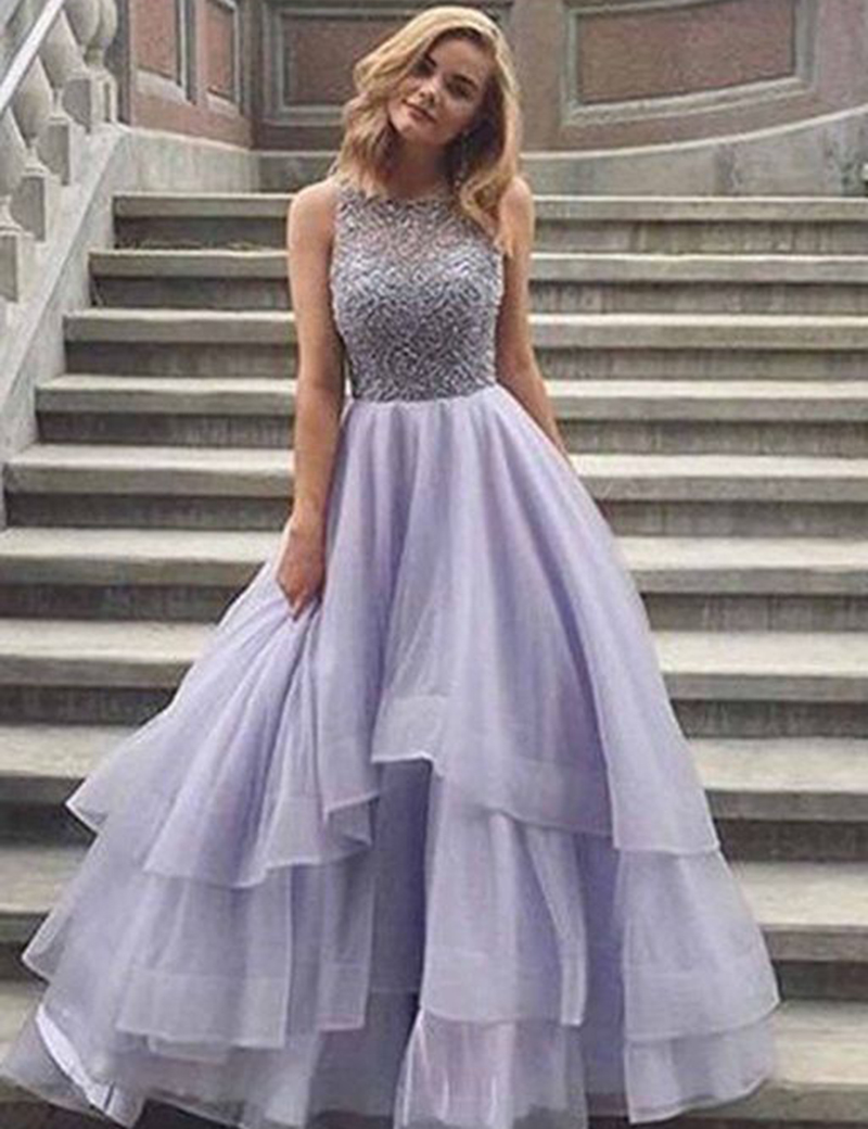 Gorgeous A-line Tiered Ruffles Beaded Crystal Prom Evening Dress Long Prom Dresses P21