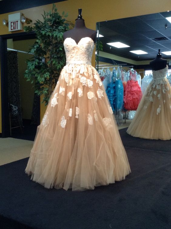 Champagne Prom Evening Dresses Elegant Sweetheart Long Ivory Appliques Evening Formal Dress E289