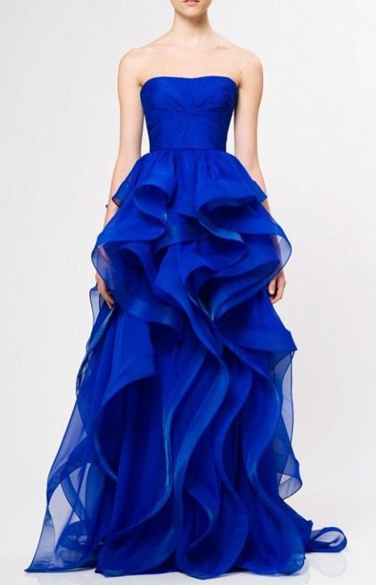 Royal Blue Prom Dress Simple A-line Strapless Pleat Ruffles Long Evening Prom Dresses Plus Size E343