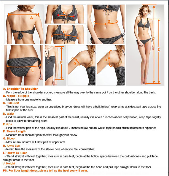 2.Size: standard size or custom size, if dress is custom made, we need to size as following