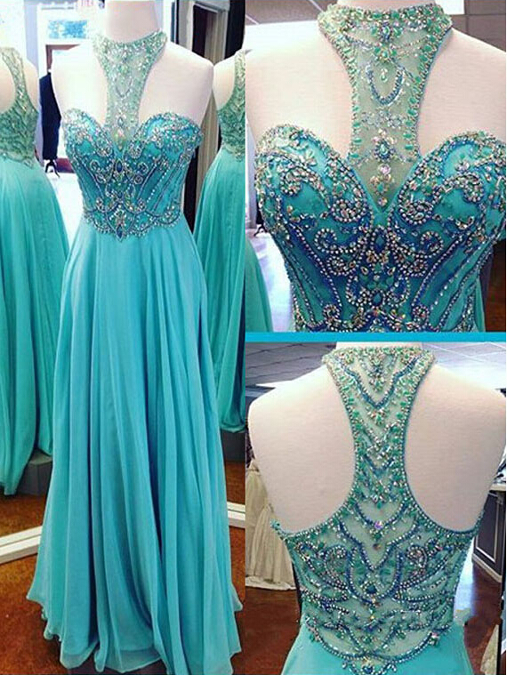 Sexy Halter Beaded Crystal Rhinestones Chiffon Long Prom Dresses
