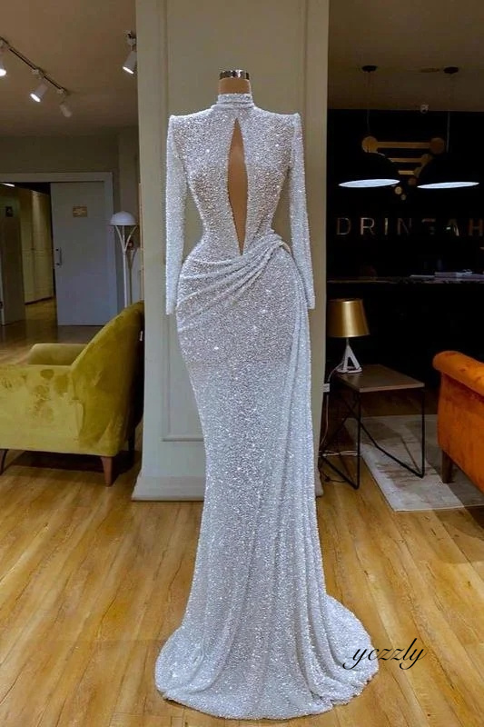 Sparkly High Neck Long Sleeves Mermaid Evening Prom Dress YE69