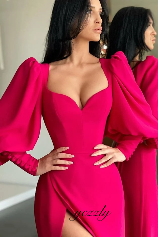 Long Sweetheart Sheath High Slit Prom Dress With Puff Sleeves YE57
