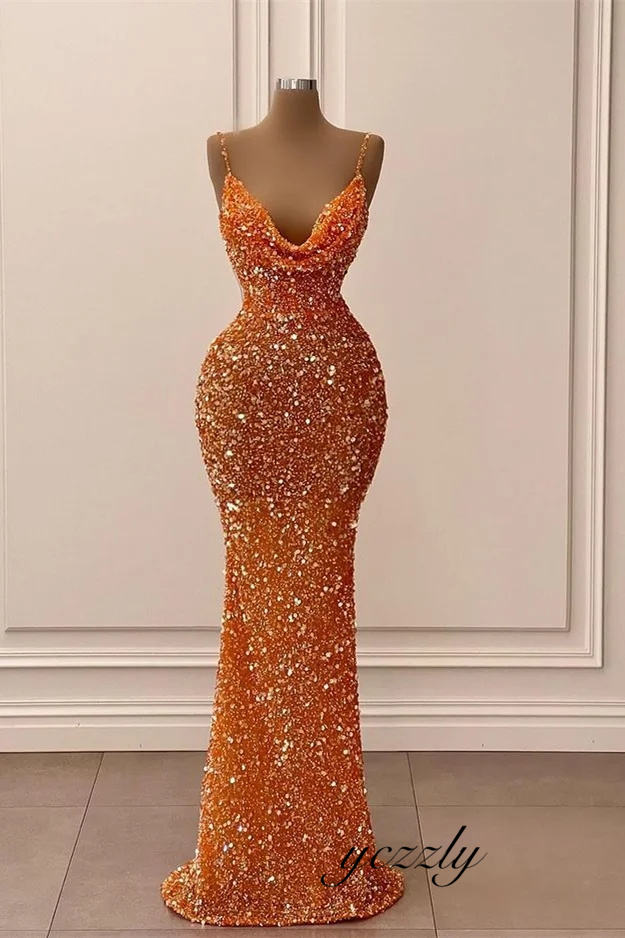 Sexy Spaghetti Straps Mermaid Sequined Prom Evening Dress YE56