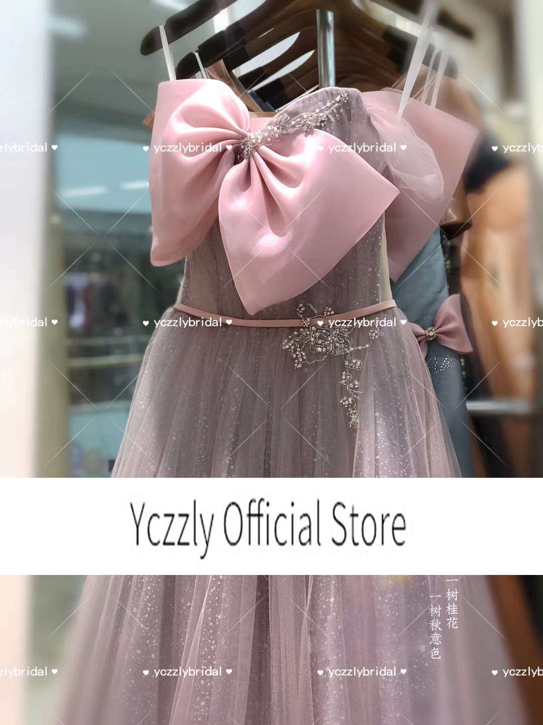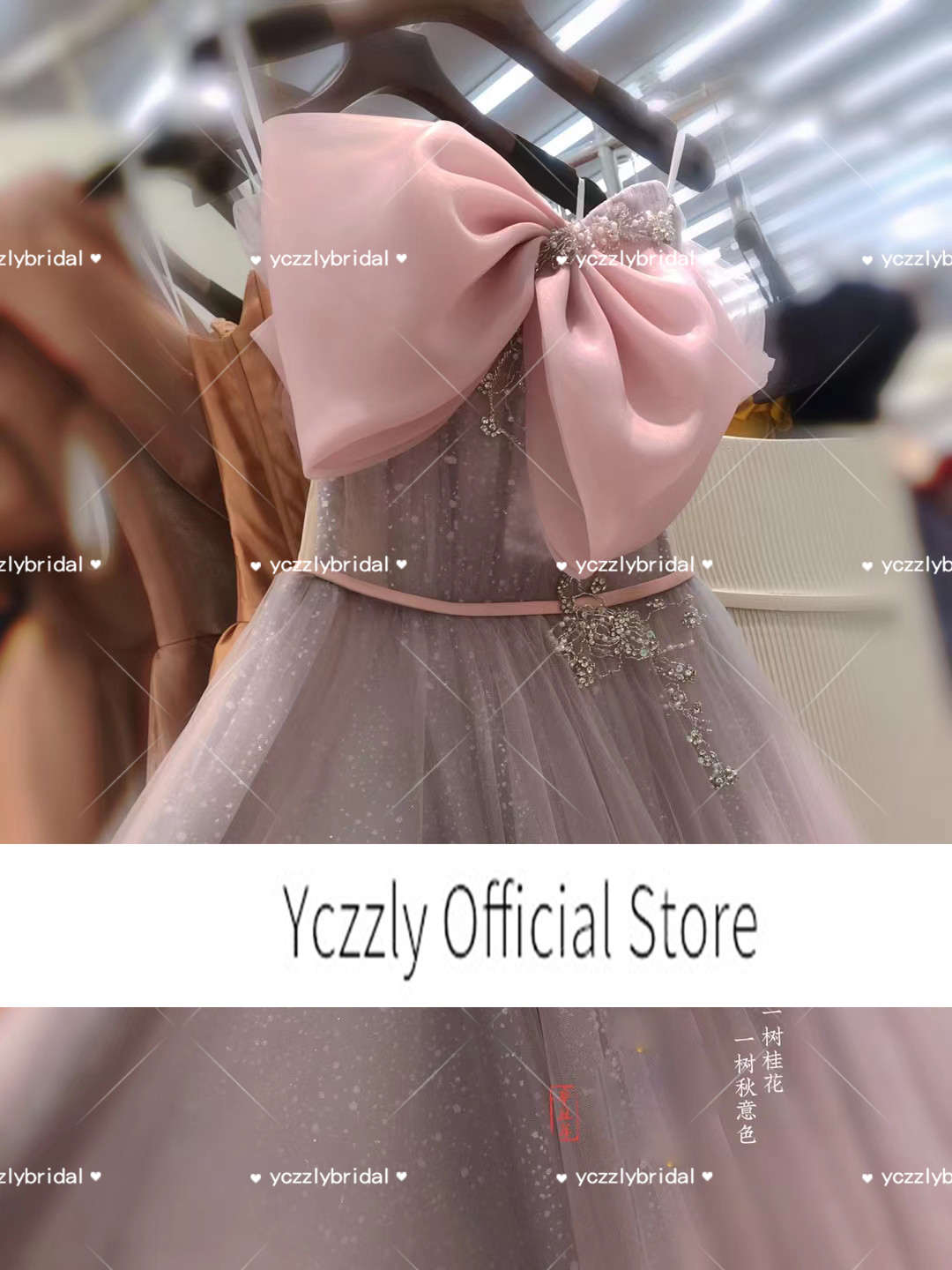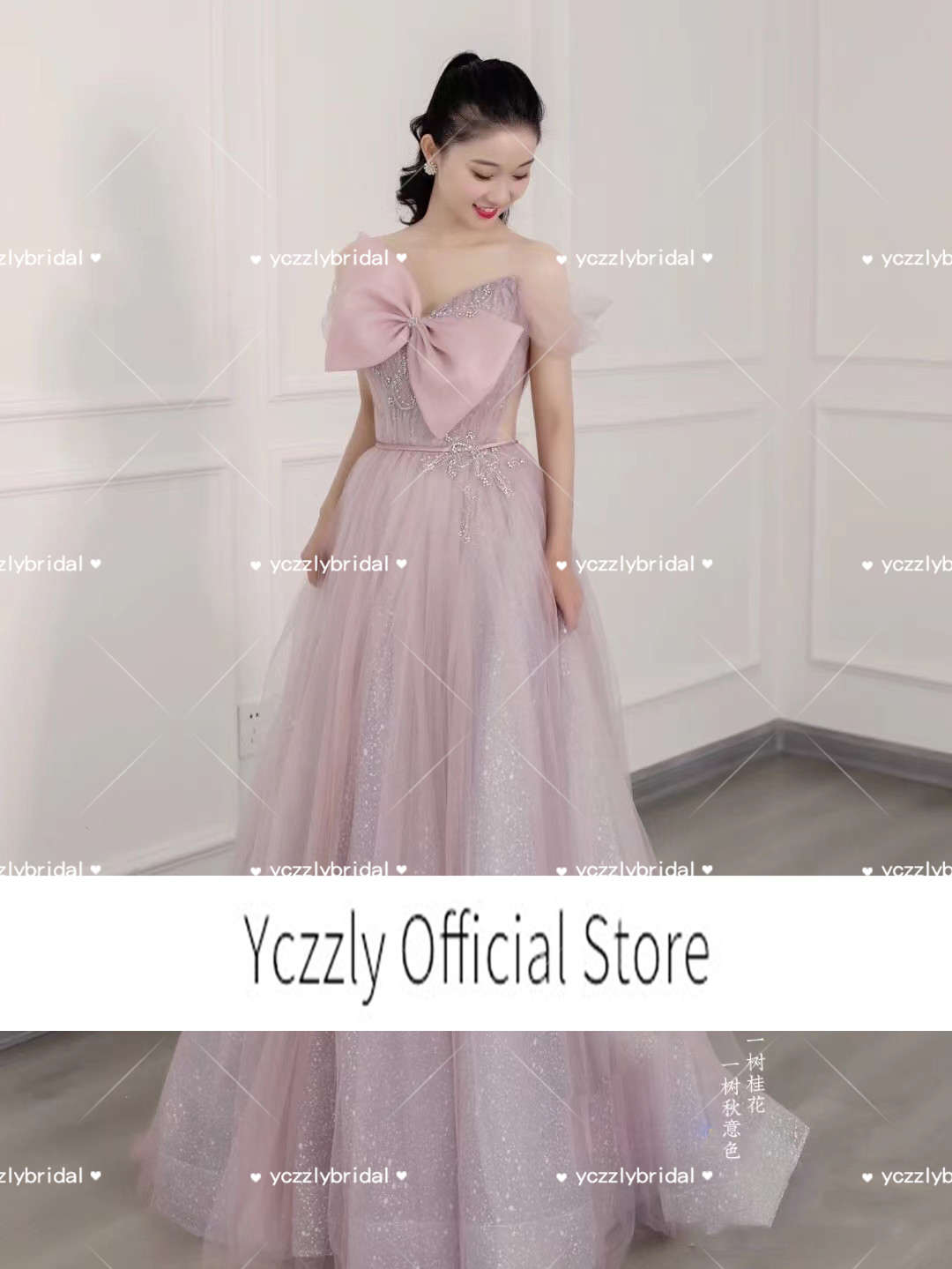 Pink Evening Dress 2024 Simple Off-shoulder Beaded Crystal Long Shiny Prom Gown With Bow YE07