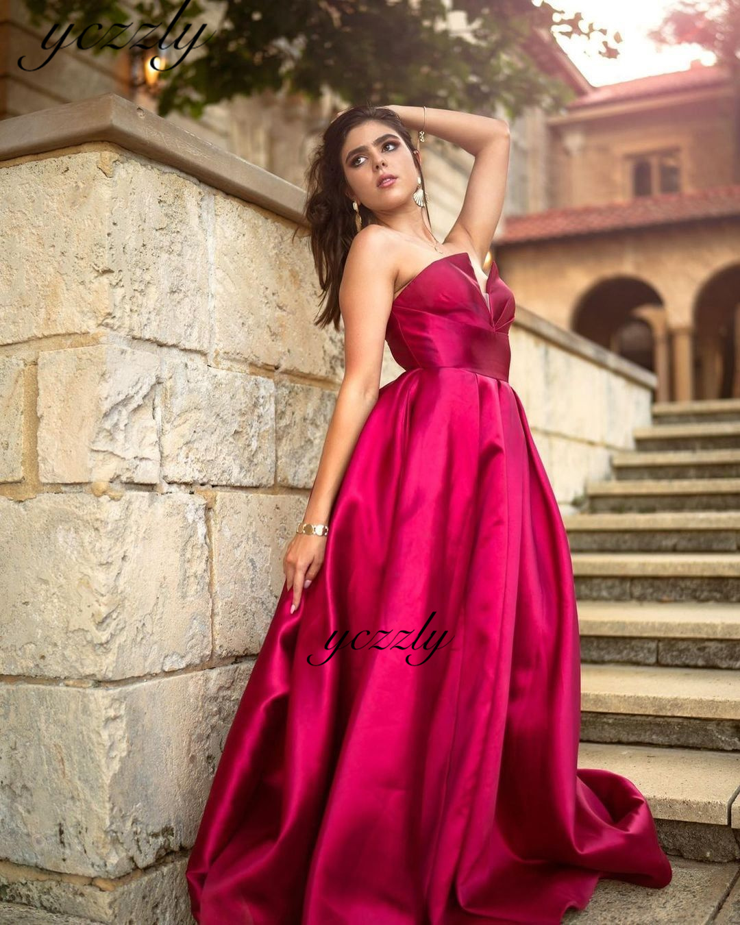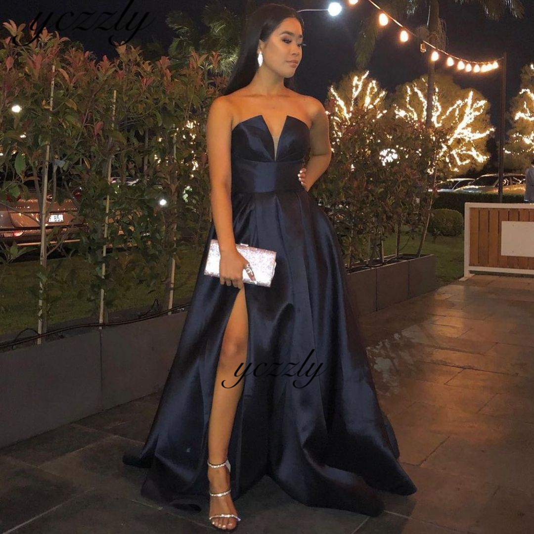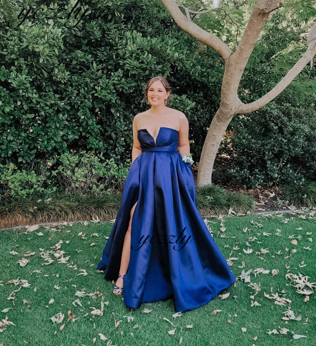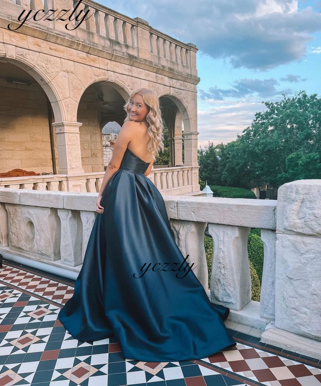 Simple Sweetheart Satin Prom Dresses With Slit YE28